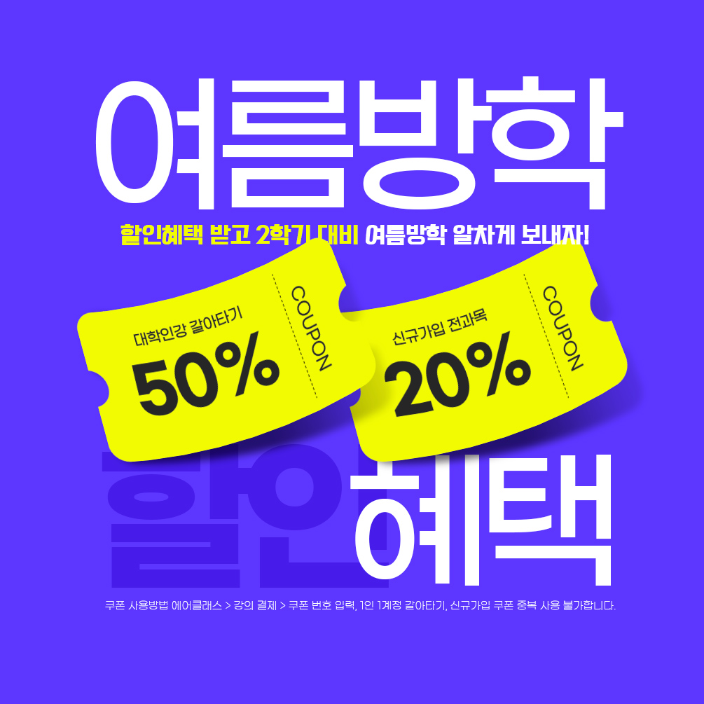 대학인강 갈아타기 50%, 신규가입 전과목 20% 할인!