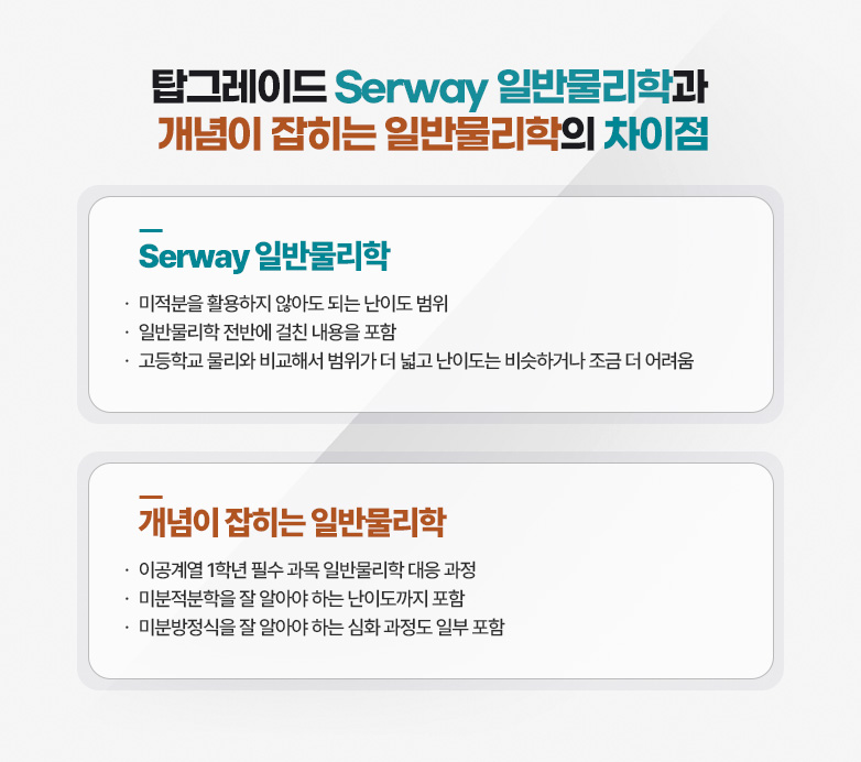- 보유하고 있는 물리 교재(기본서 - College Physics, Serway 등)가 달라도 수강 가능
