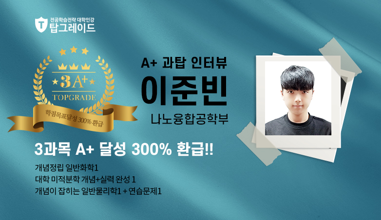 | A+ 과탑 인터뷰 200% 환급달성자 김주은(화공생명공학과) 공업수학1, 유기화학1 (0) | 2023.03.21 |