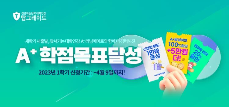 - 탑그레이드 대학인강을 수강하고 전공과목 학점 A+달성 시,