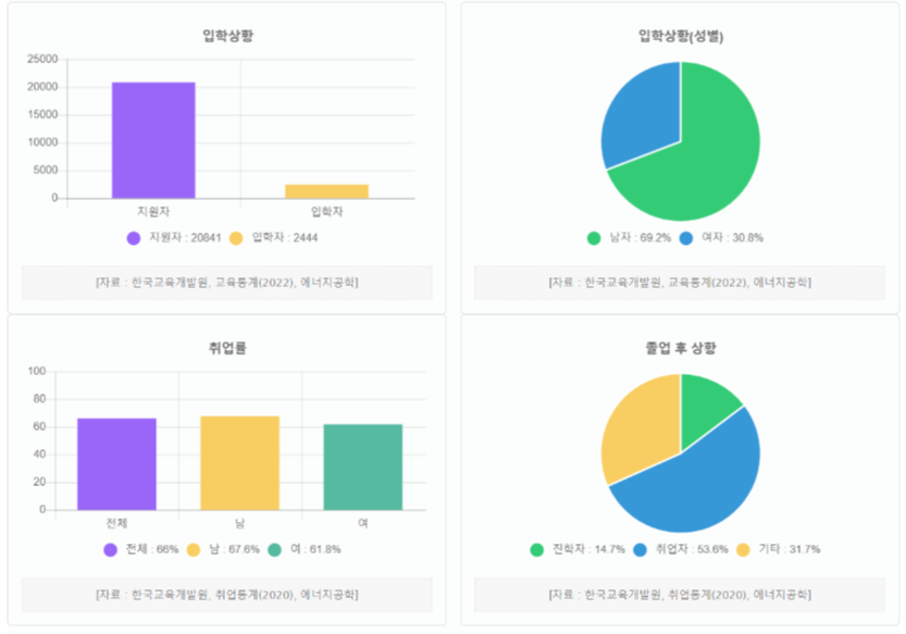 대학교 학과 소개 - 에너지자원공학과 학과개요 도로를 달리는 자동차, 손목에 차고 있는 스마트 시계, 더운 여름을 시원하게 해주는 선풍기와 에어컨 등 일상생활에서 사용하는 여러 제품들을 움직이게 하는 것은 바로 에너지입니다. 에너지공학과는 한정된 에너지를 합리적 경제적으로 사용하는 방법을 다루며, 에너지 생산과정 및 변환과정, 에너지의 종류 및 특성에 대해서 배웁니다. 에너지공학과는 에너지와 관련된 다양한 문제를 해결과 에너지 자원의 기술개발을 할 수 있는 에너지 전문 인력을 양성하는 것을 목표로 하고 있습니다. 학과특성 최근 세계적으로 기후 변화와 지구 온난화로 인해 폭염이나 홍수 발생으로 많은 사람들이 어려움을 겪고 있습니다. 지구 온난화와 관련이 있는 온실가스 감축, 탄소배출량 감소정책을 통한 ..